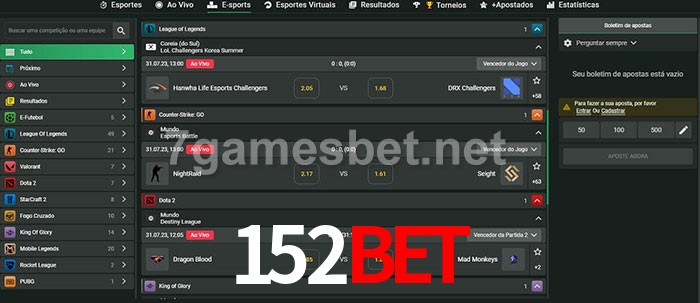 A aposta 152Bet oferece aos jogadores a experiência mais conveniente de apostas em eSports!